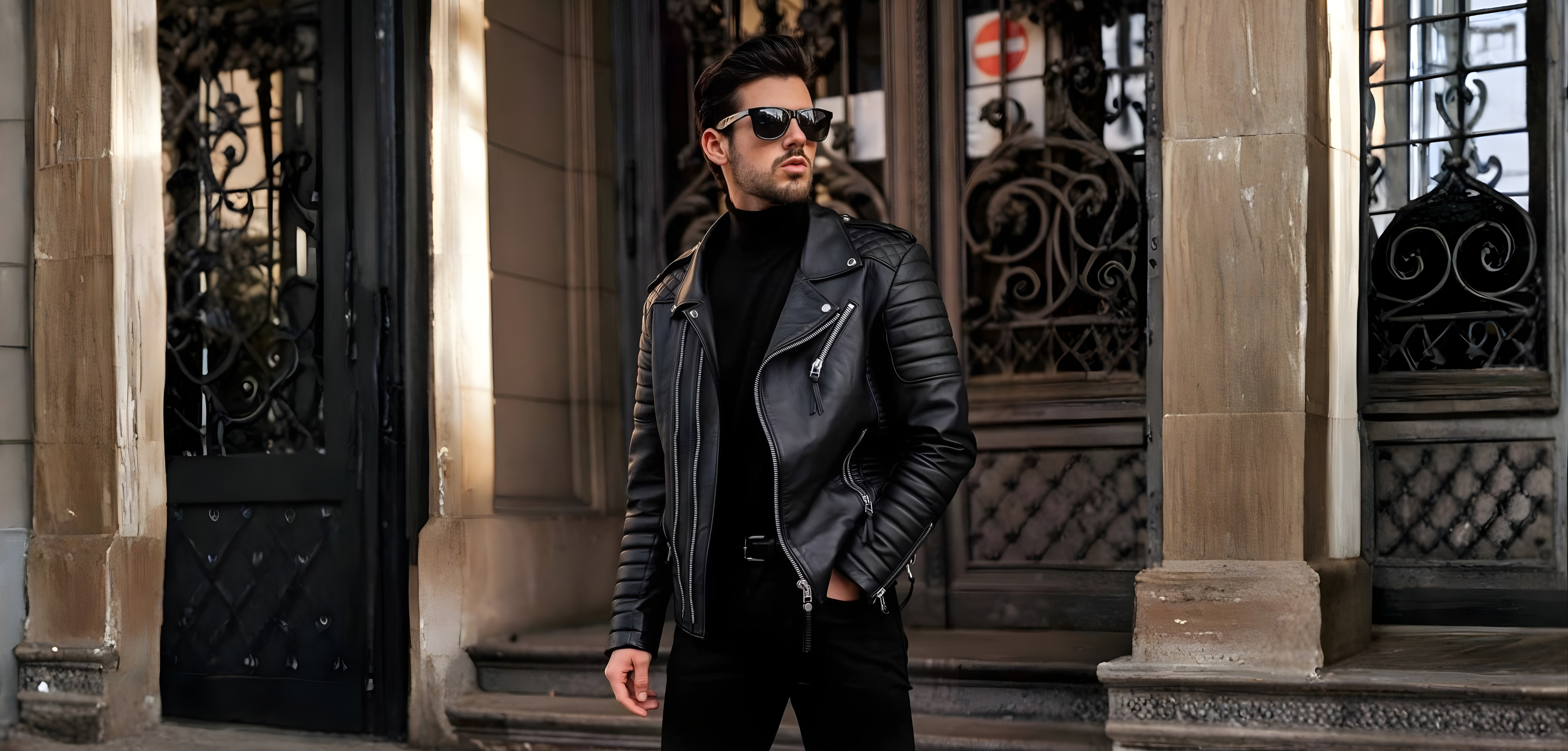 Tavares Men's Matte Black Biker Style Leather Jacket
