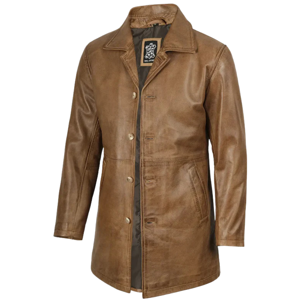 Winchester Men's Camel Brown 3/4 Length Leather Car Coat