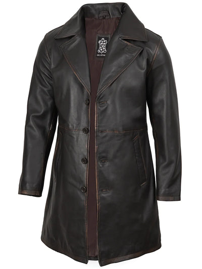 Men's Real Leather 3 4 Length Dark Brown Car Coat