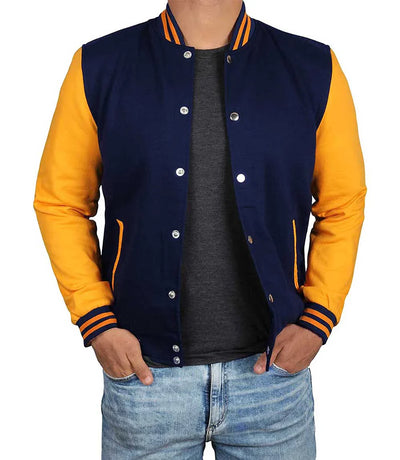 Men's Plain Blue and Yellow Varsity Letterman Jacket