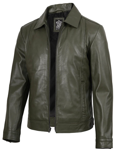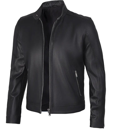 Men's Distressed Coffee Brown Leather Cafe Racer Style Jacket