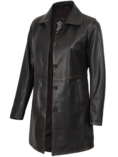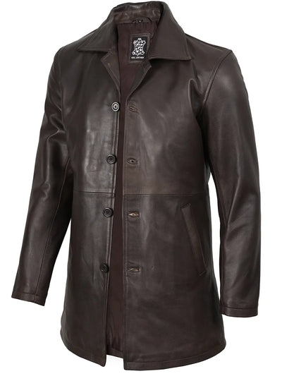 Winchester Men's Distressed Dark Brown Leather Car Coat