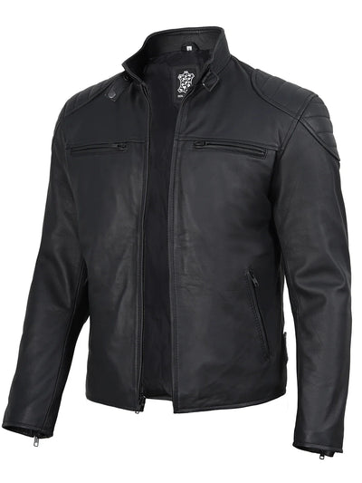 Vermont Men's Matte Black Biker Style Leather Jacket