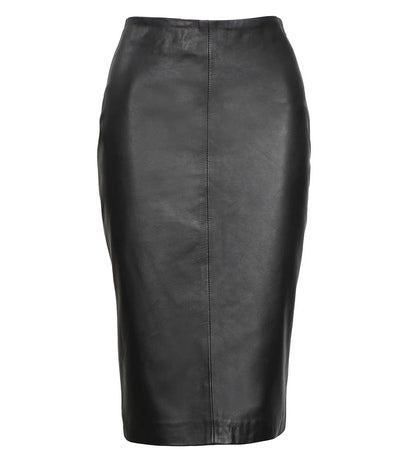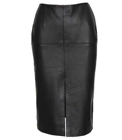 Women's Black Midi Leather Pencil Skirt with Back Slit