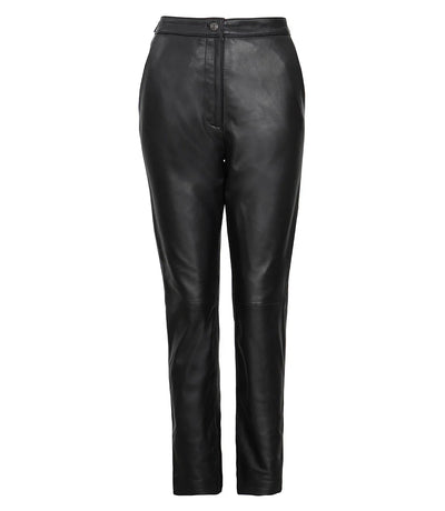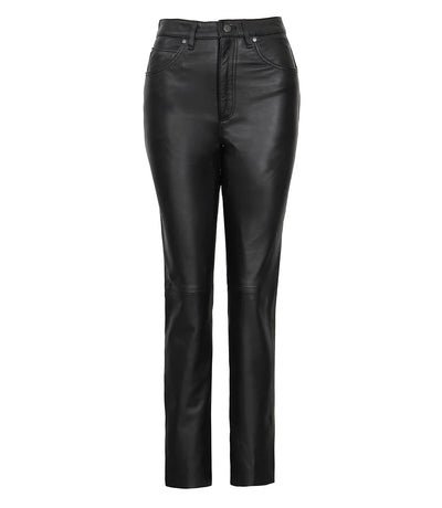 Women's Black Fitted Leather Pants - Straight Leg Style