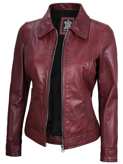 Women's Burgundy Asymmetrical Biker Style Real Leather Jacket