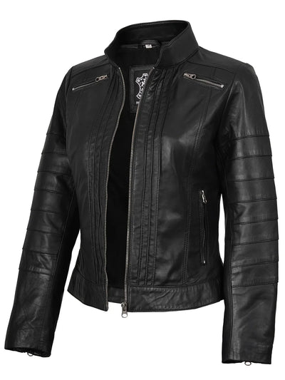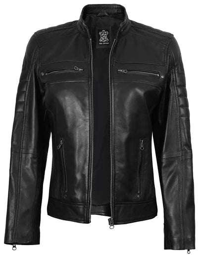 Bergamo Womens Black Real Leather Cafe Racer Jacket