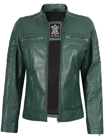 Austin Women Cafe Racer Style Green Leather Jacket