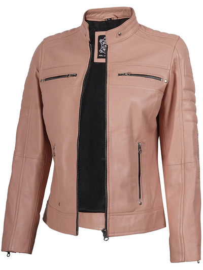 Austin Womens Pink Cafe Racer Style Leather Jacket
