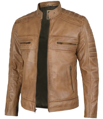 Austin Mens Distressed Tan Cafe Racer Real Leather Jacket