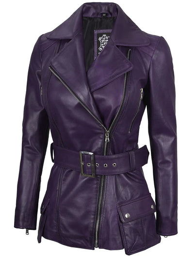 Women's Purple Asymmetrical Leather Biker Style Jacket