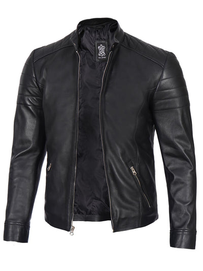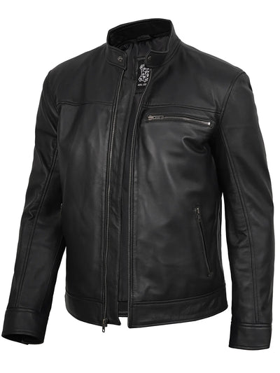 Carrie Mens Black Cafe Racer Real Leather Jacket.