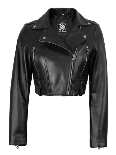 Colleen Women’s Cropped Black Biker Style Leather Jacket