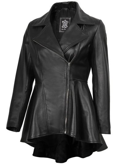 Clarissa Womens Black Asymmetrical Peplum Leather Jacket