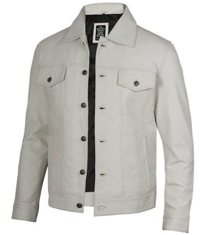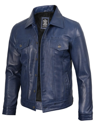 Fernando Men's Cognac Wax Harrington Leather Trucker Jacket