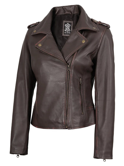 Kirsten Purple Brown Leather Biker Style Jacket Womens