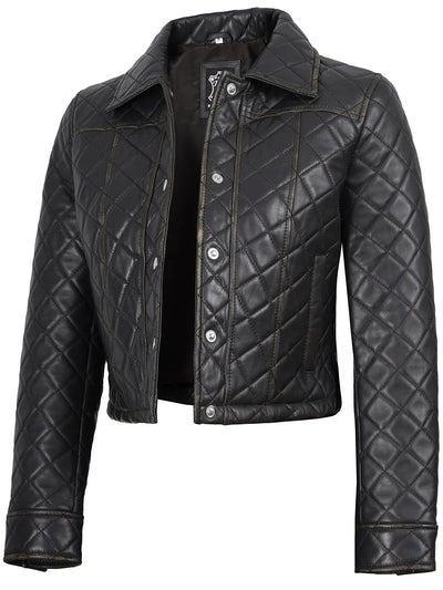 Mable Women's Dark Brown Cropped Shirt Collar Leather Jacket