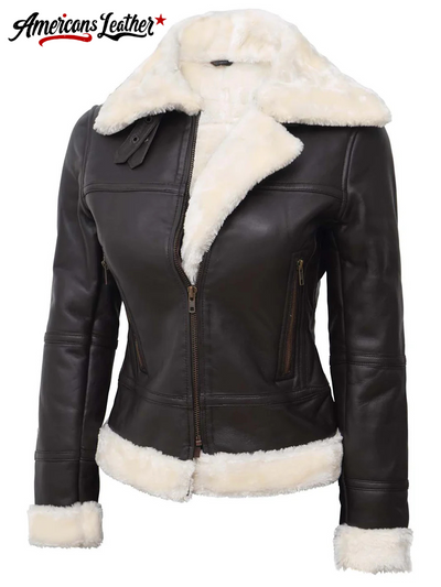 Frances Dark Brown Real Leather Shearling Bomber Jacket