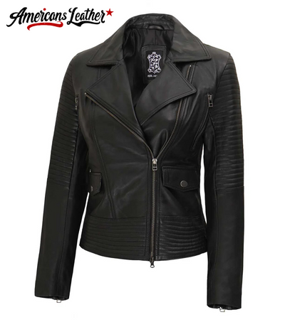 Black Leather Motorcycle Jacket For Womens