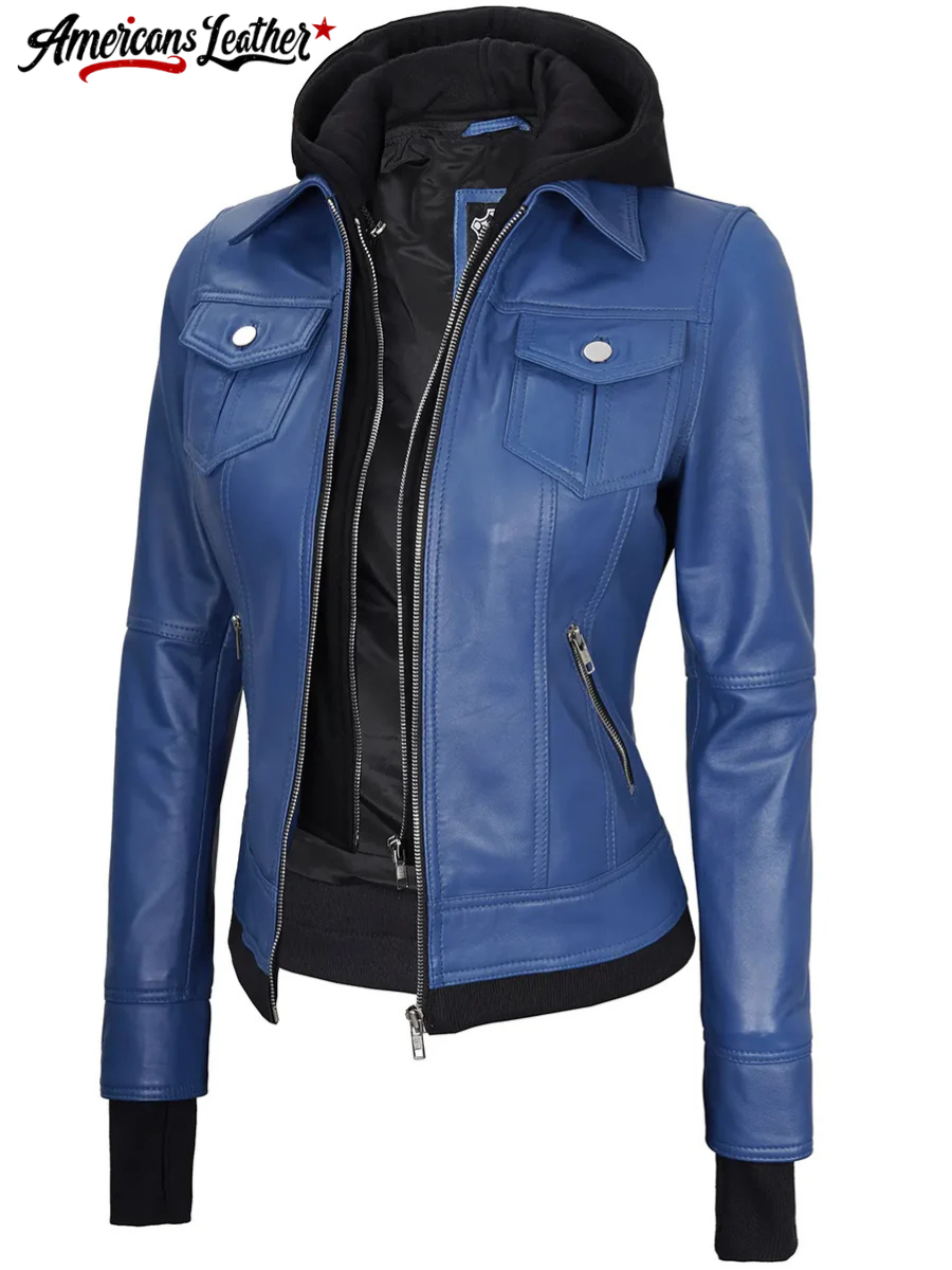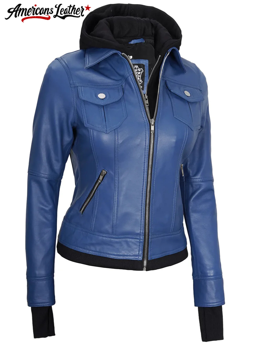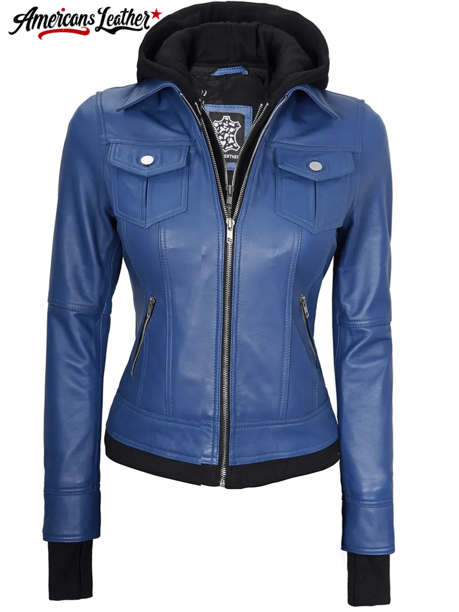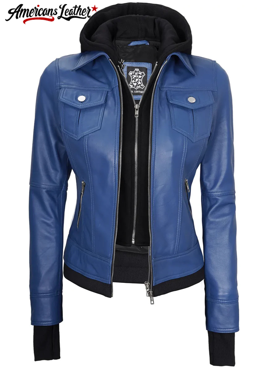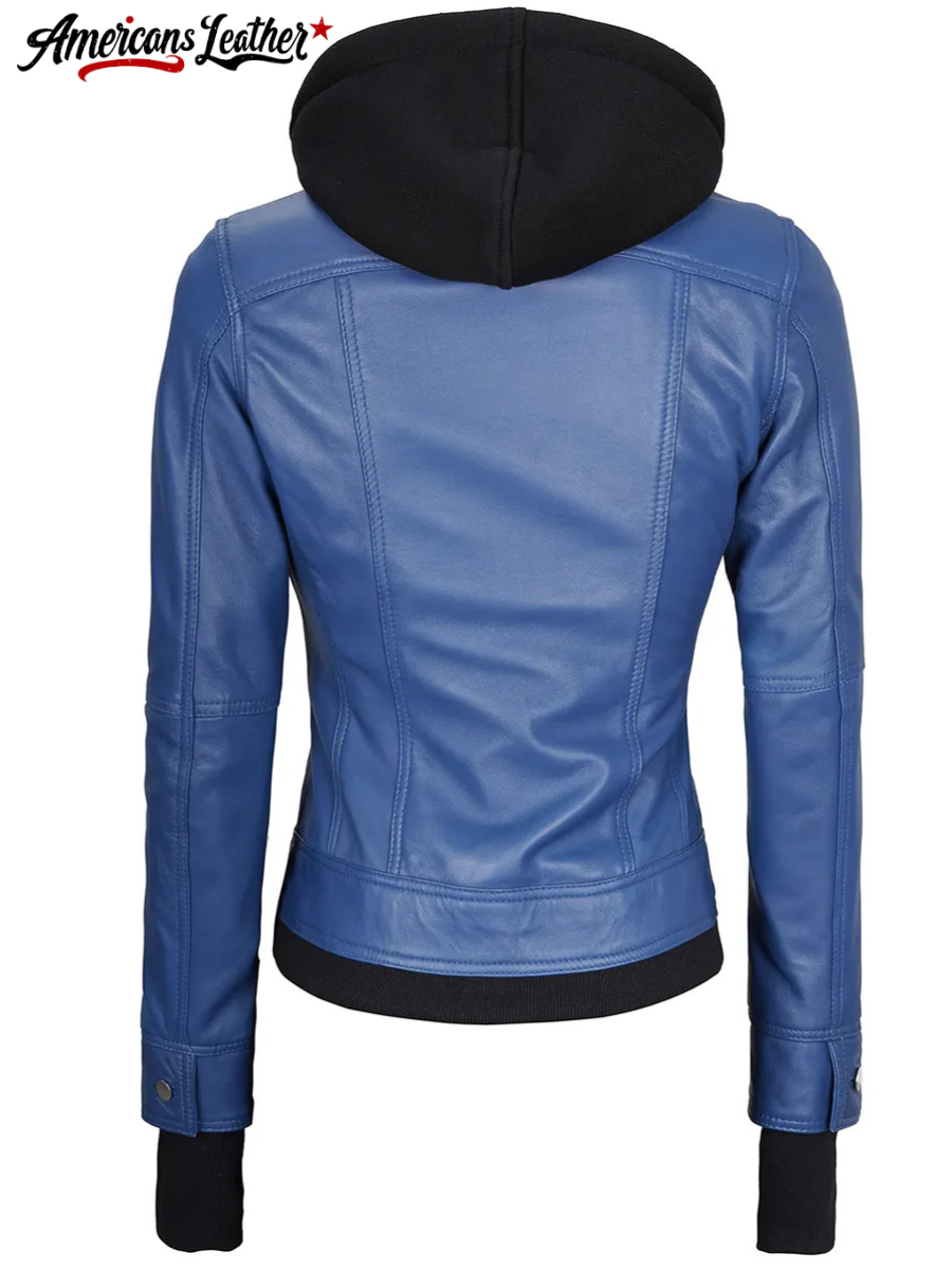 Introducing the Betty Blue Leather Jacket – a stylish and versatile addition to your wardrobe. Featuring a removable hood, it offers warmth and flexibility for any weather. Made from high-quality leather, this jacket combines durability with a luxurious look, making it a must-have piece.