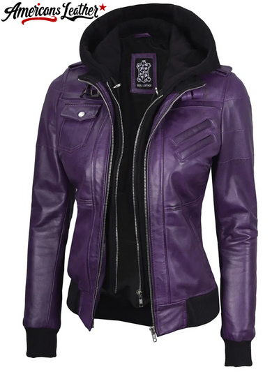 Edinburgh Purple Hooded Leather Bomber Jacket