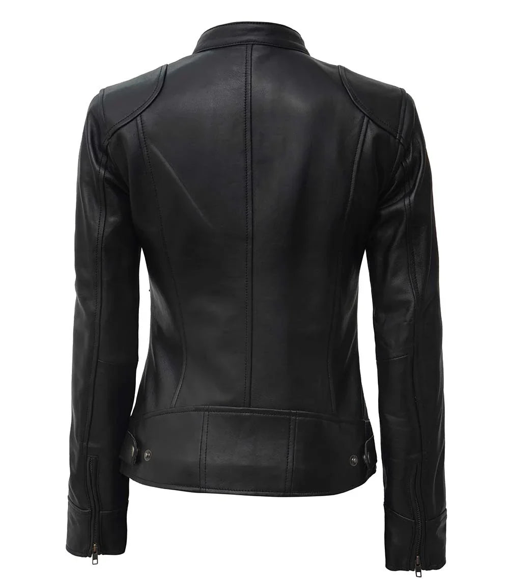 Dodge Women's Tall Black Leather Biker Style Jacket