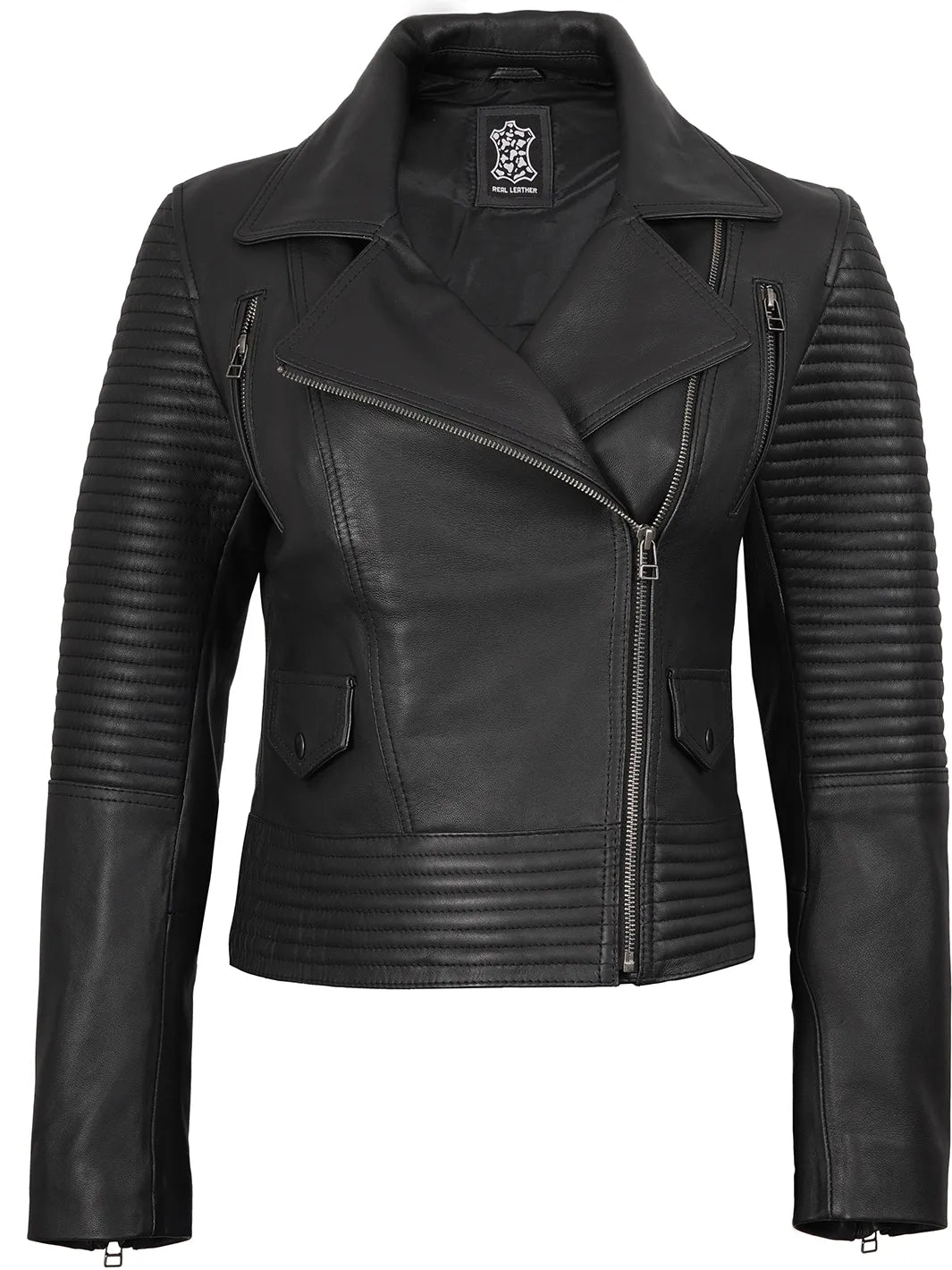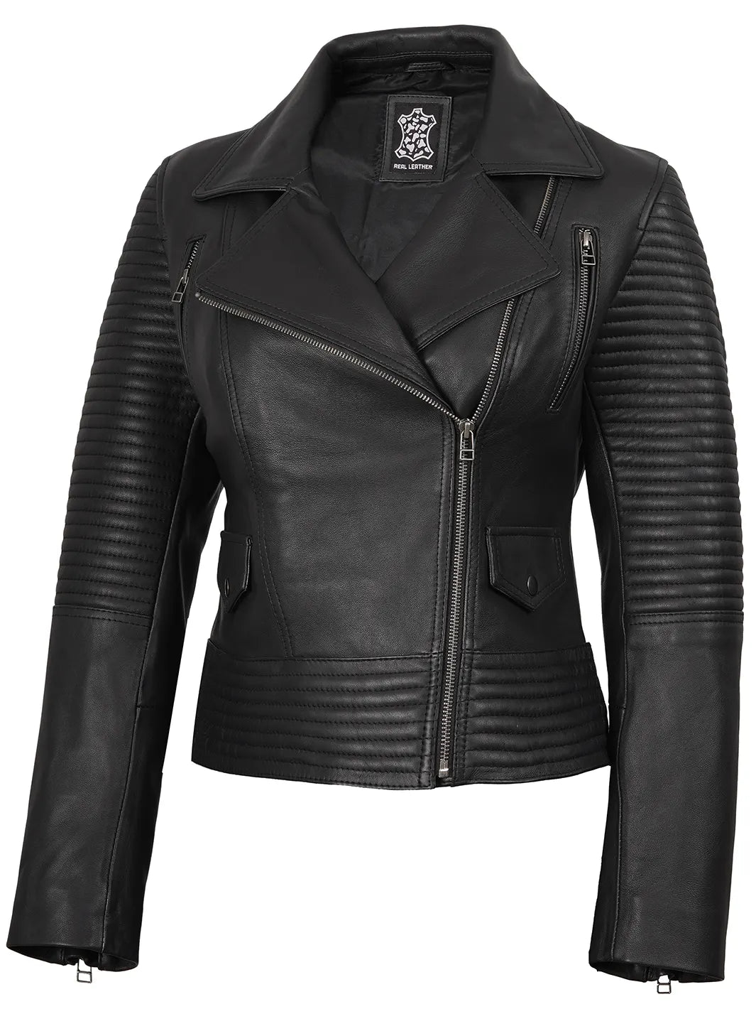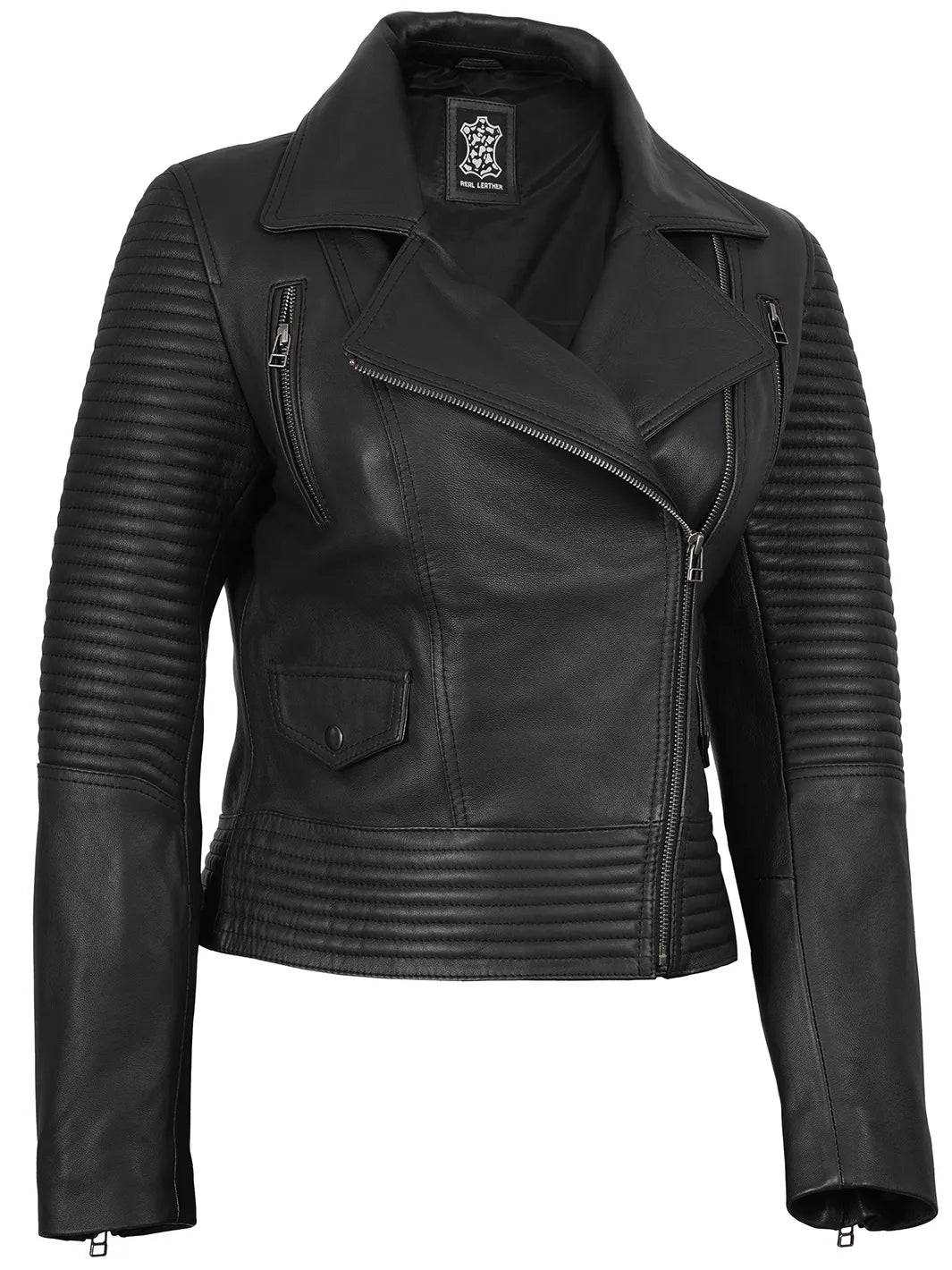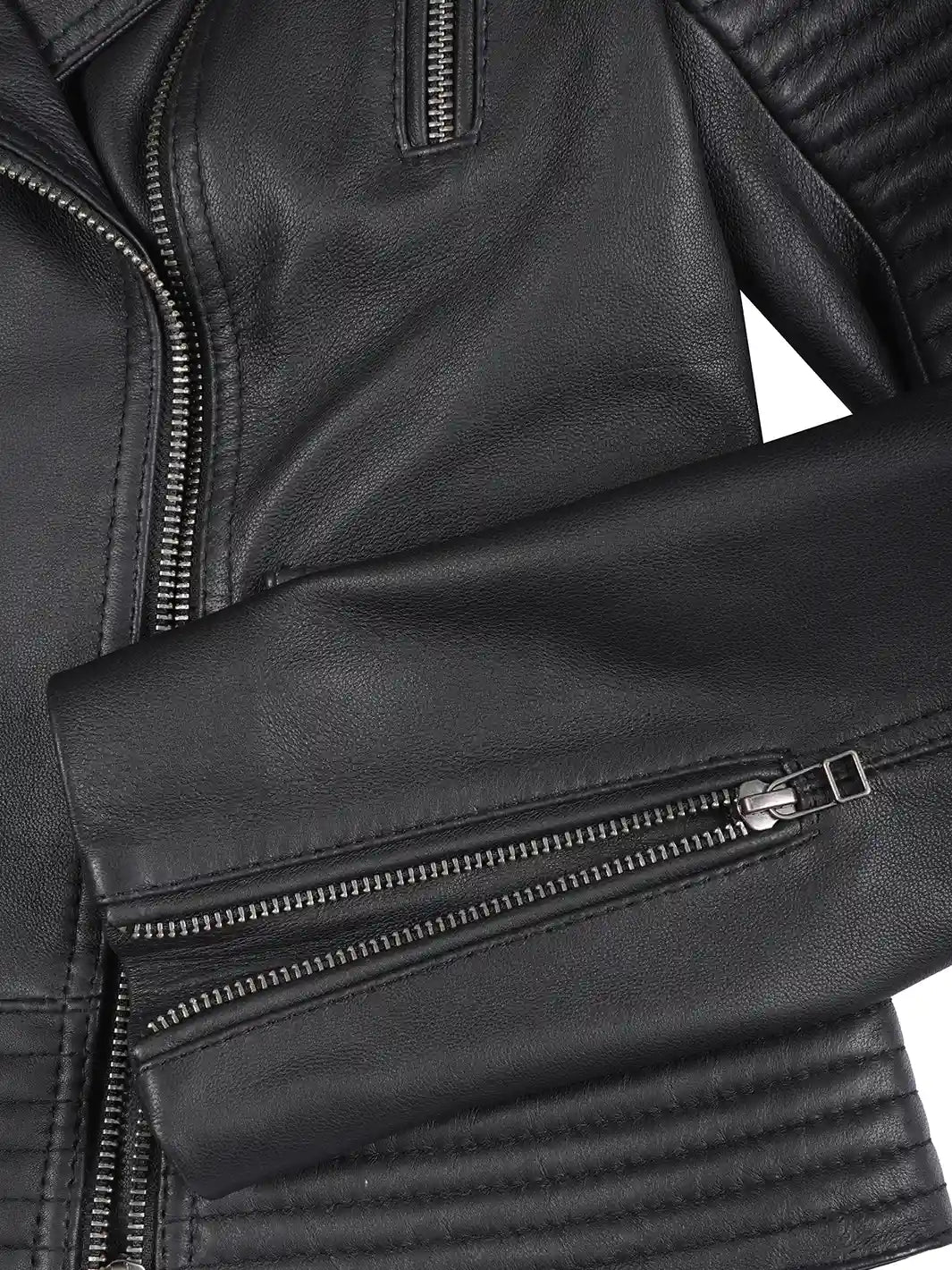 Command attention with the Black Leather Biker Style Jacket, a symbol of bold elegance and modern sophistication. Made from 100% real lambskin leather, this jacket combines a sleek look with biker detailing.