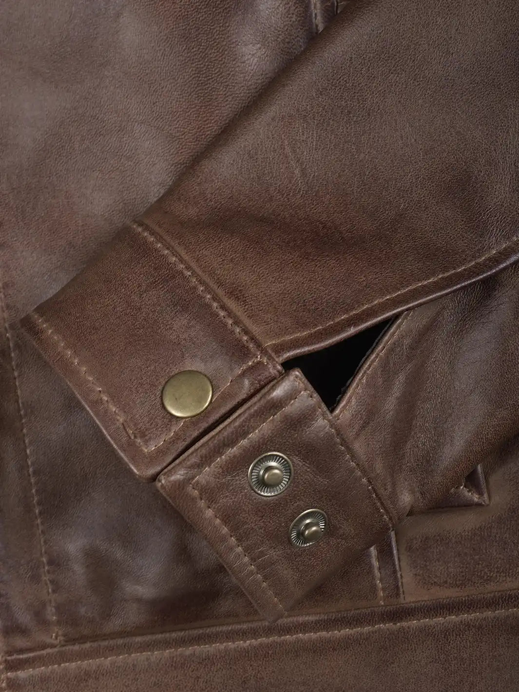 The Men's Shirt Collar Chocolate Brown Leather Jacket is a stylish and durable jacket made from high-quality leather. It features a shirt collar design and a chocolate brown color that gives it a classic and sophisticated look. The jacket is designed to be both warm and comfortable, with a soft lining that ensures a comfortable fit.
