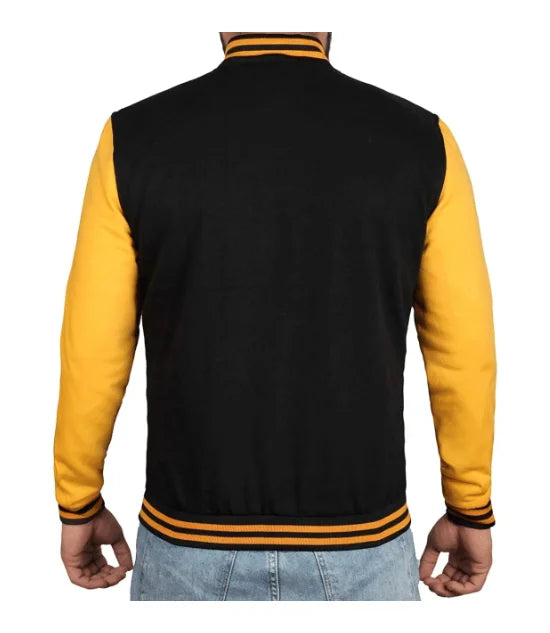 Men's Black and Yellow Varsity Letterman Jacket