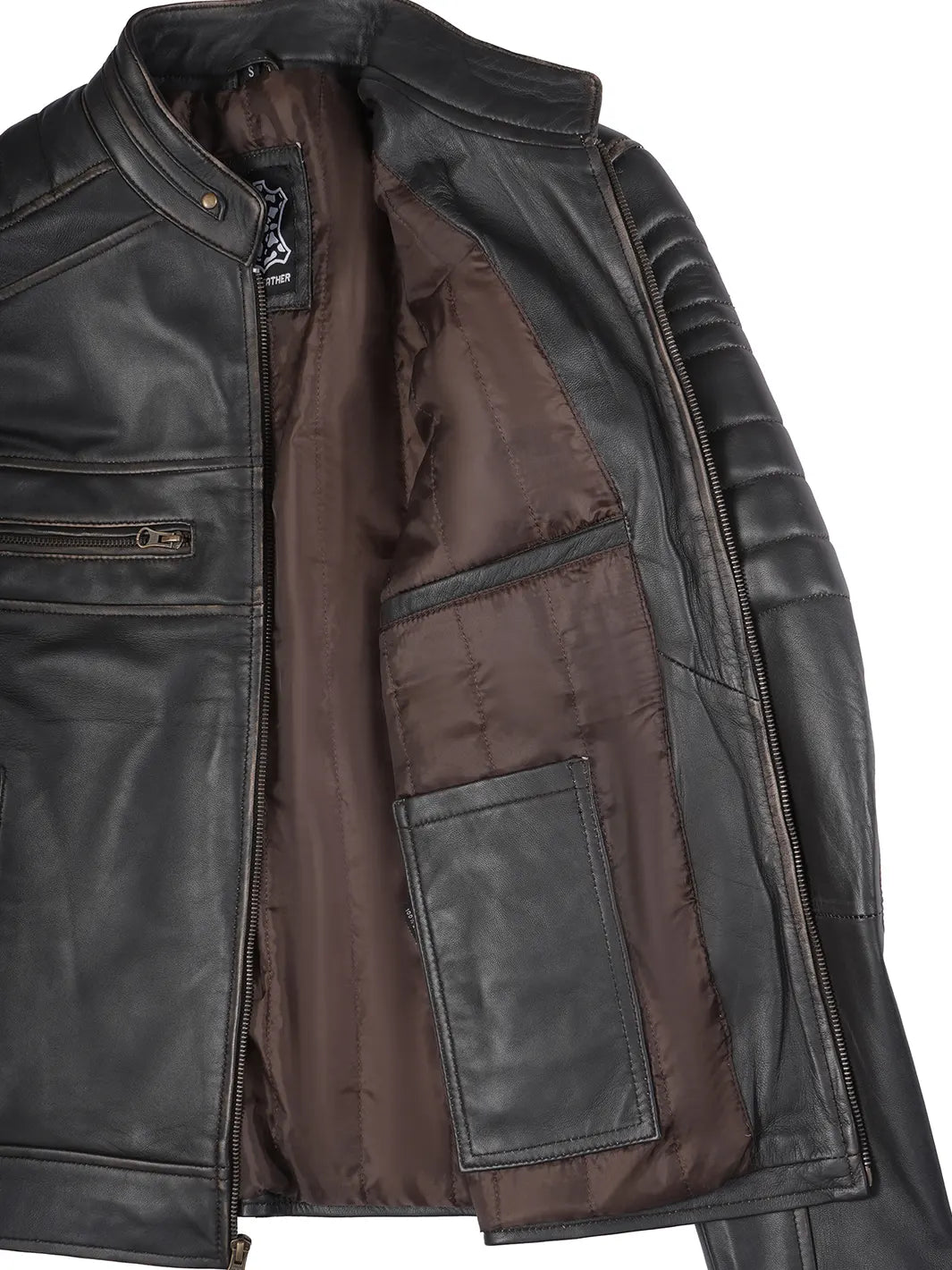 Men's Rub Off Dark Brown Cafe Racer Leather Jacket