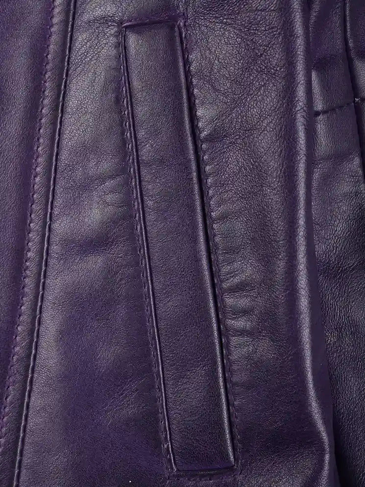 Step into standout style with the Kandis Purple Leather Car Coat, designed in a 3/4 length for elegant coverage. Crafted from real lambskin leather, it features a classic shirt collar, front button closure, and handy pockets. A refined choice that brings modern edge to a timeless silhouette.