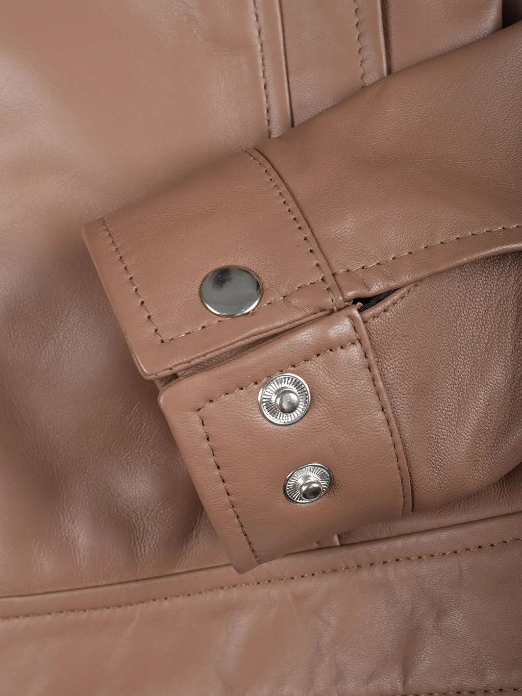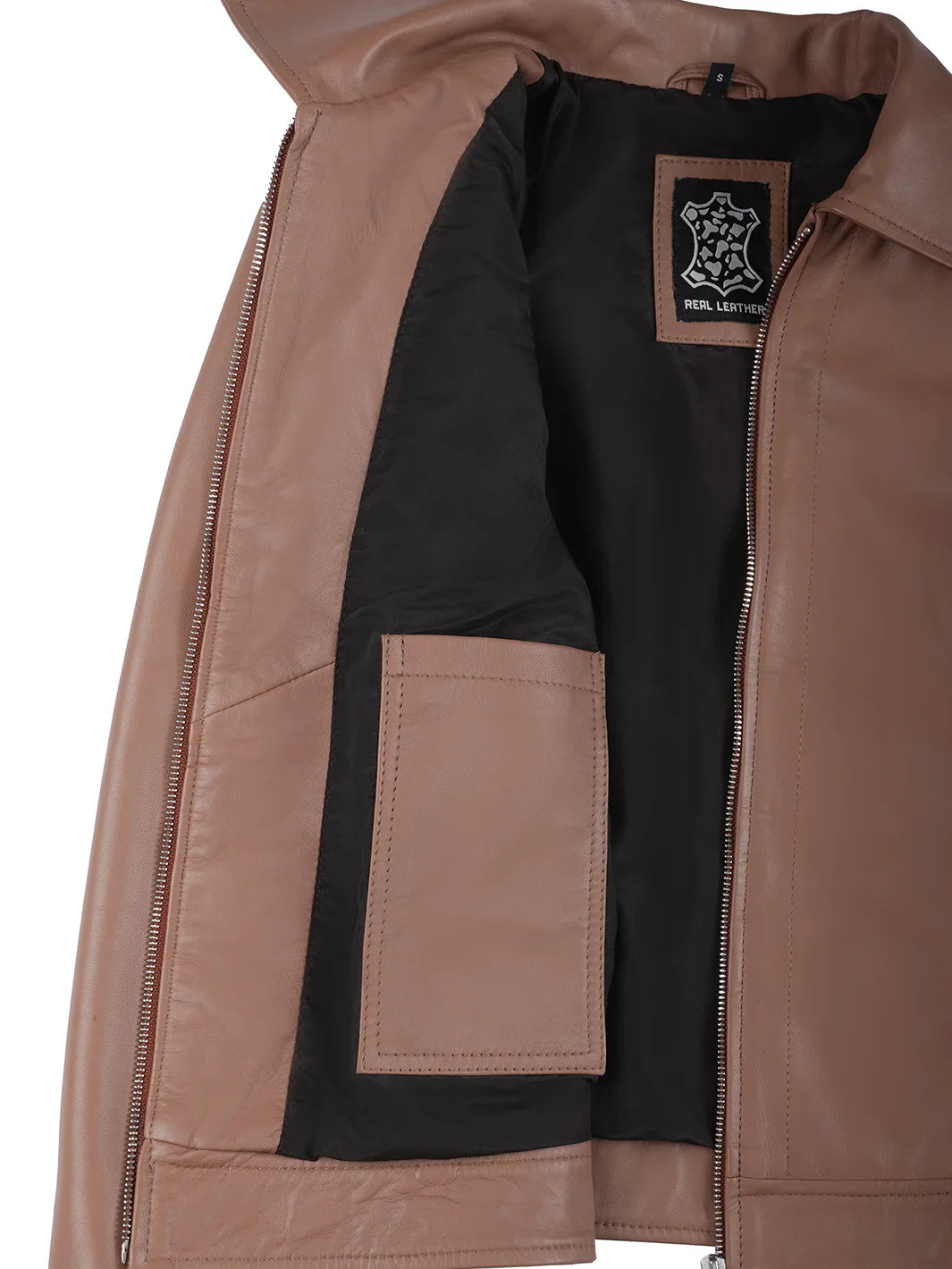 Women’s Mocha Brown Real Leather Harrington Jacket